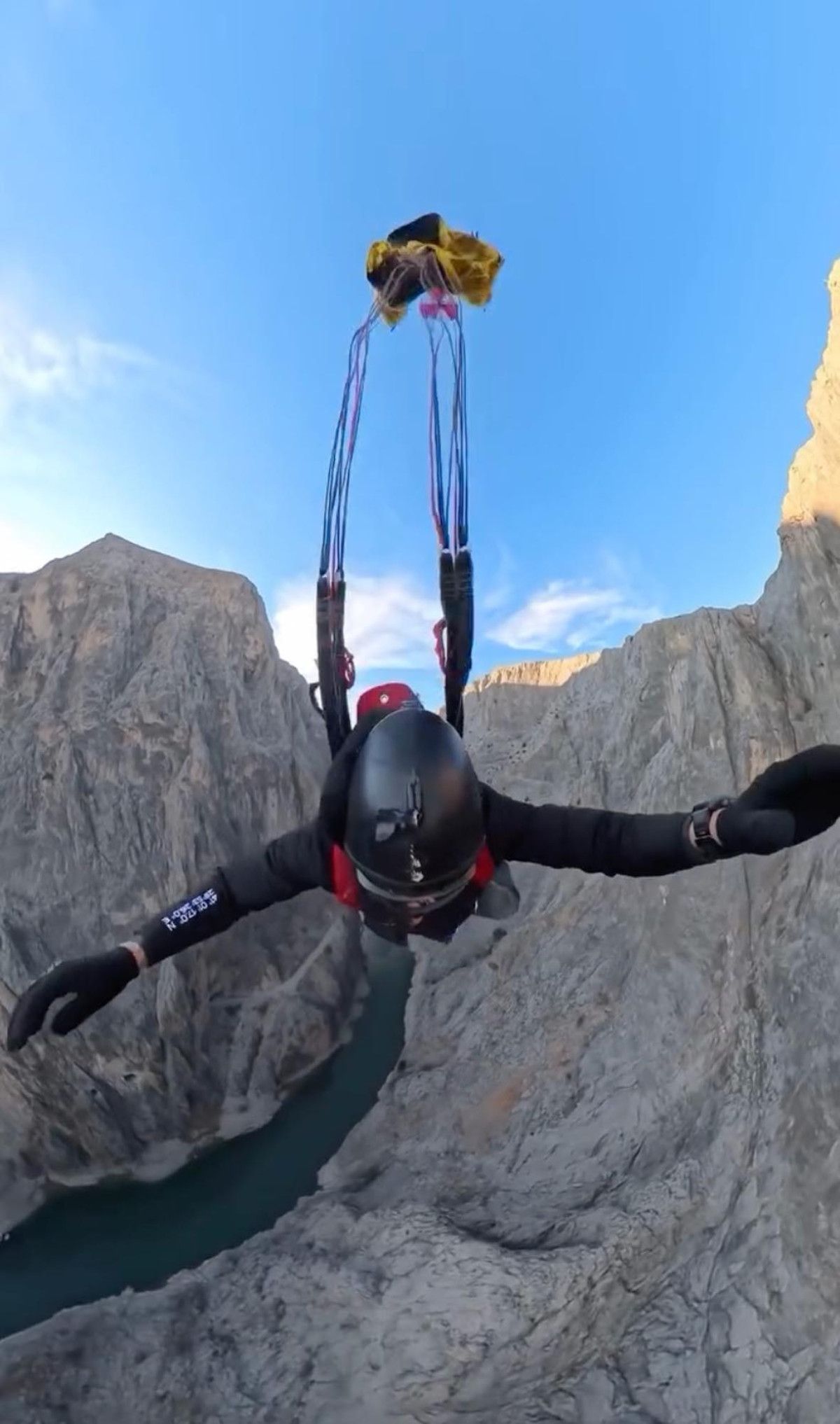 Karanlık Kanyon’da nefes kesen base jump atlayışı