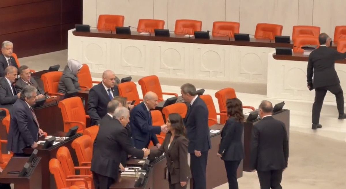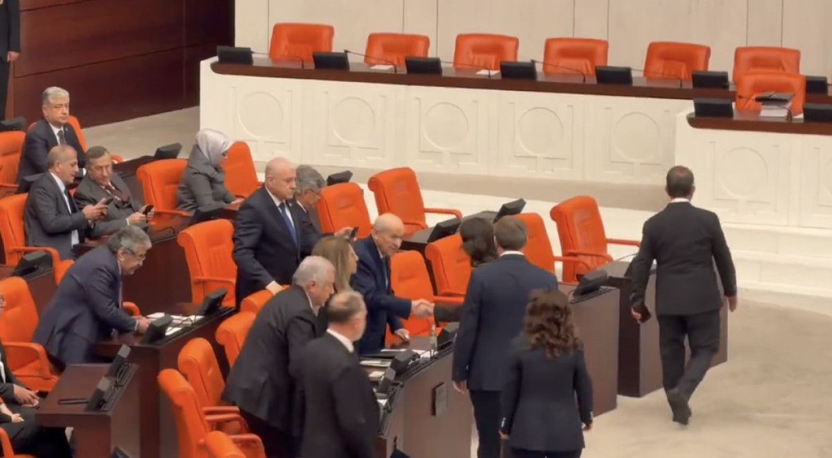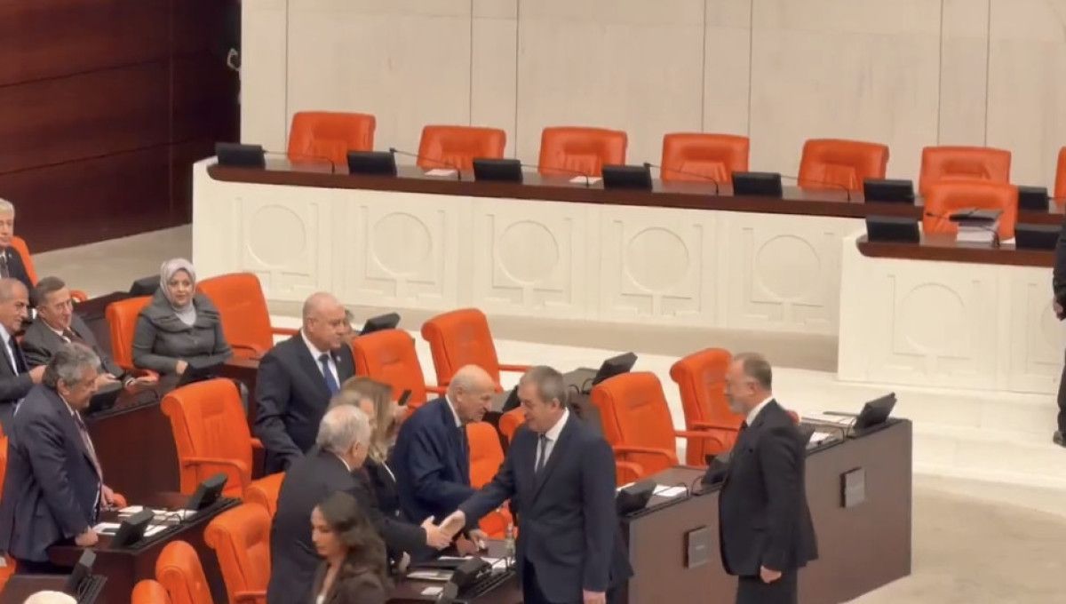 Özel, MHP Genel Başkanı Devlet Bahçeli ile tokalaştı.